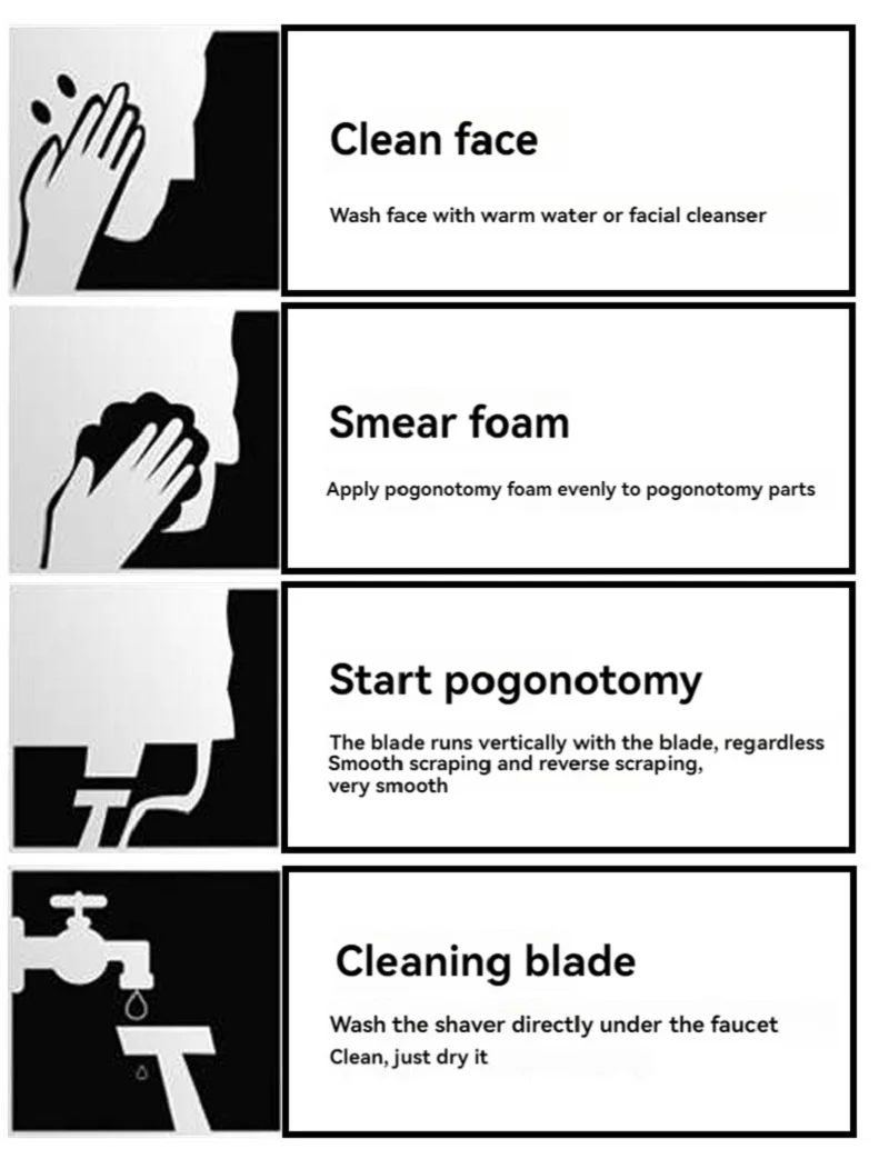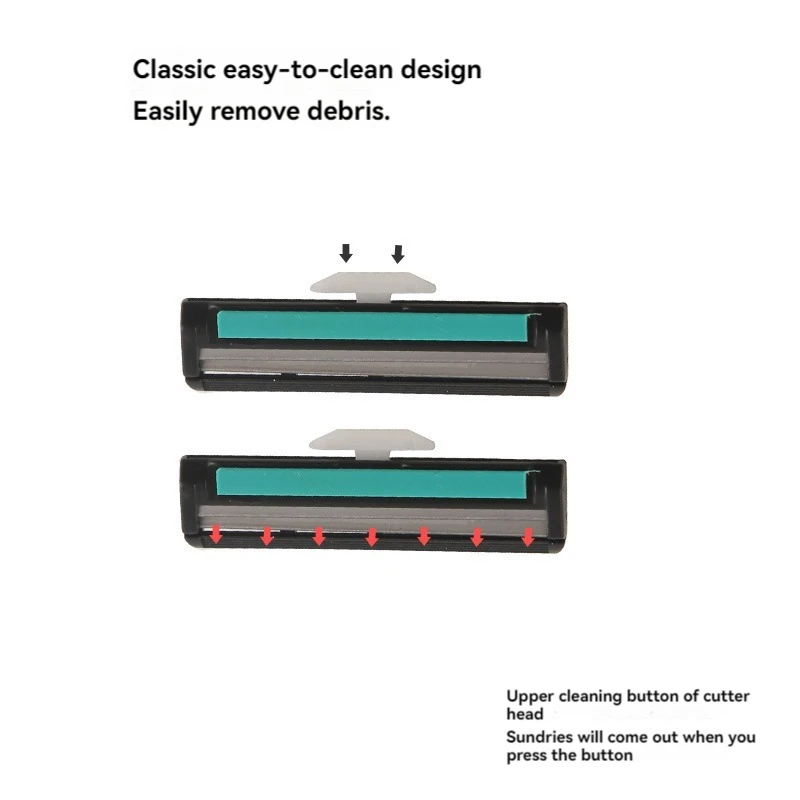 Classic easy to clean design, easy to remove debris. Cleaning button on the top of the knife head, debris will come out when you press the button, non-slip texture is easier to operate, multi-layer non-slip texture, grasp firmly. Lightweight and easy to maneuver knife frame, reduce the weight of the knife frame, improve the dexterity of operation. The blade runs perpendicular to the blade, no matter how smooth it is to scrape against the blade, it's smooth as can be. No fear of full-body cleaning, the broken whiskers can be cleaned with a single flush.